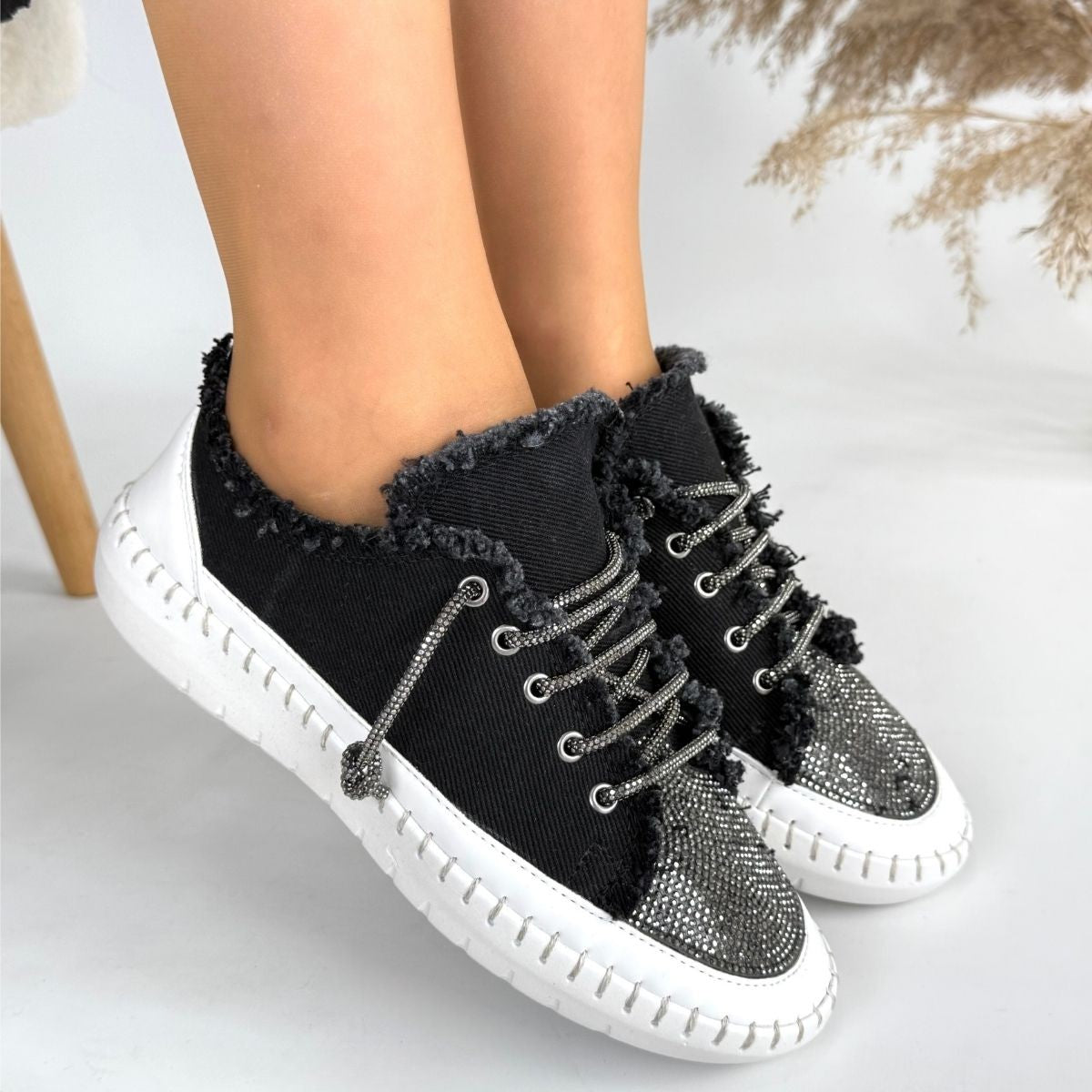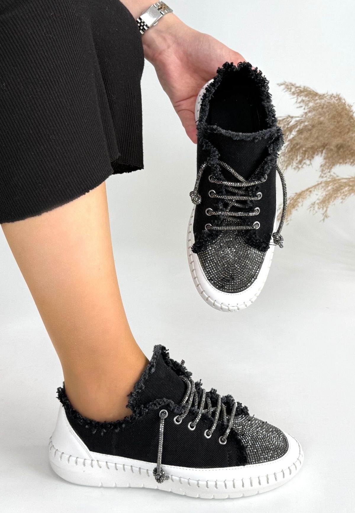 Scarpax Siyah Kot Spor Ayakkabı - Ortapedik Topuk Dikenine Karşı Özel Üretim, Keten Malzeme