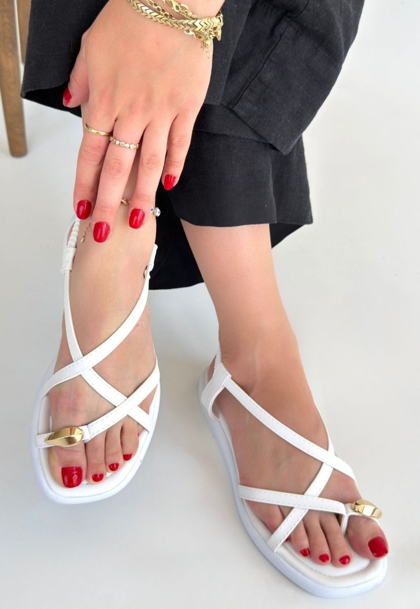 Scarpax Enjali Beyaz Cilt Sandalet, hem plajda hem de günlük yaşamda mükemmel bir seçimdir. Farklı stillerle kombinlenebilirken, pratikliği ile de öne çıkar. Göz alıcı beyaz rengi, yaz günlerinin enerjisini yansıtır ve her ortamda dikkat çeker.