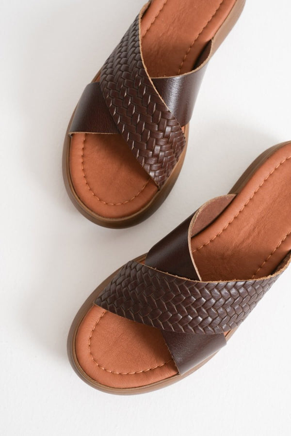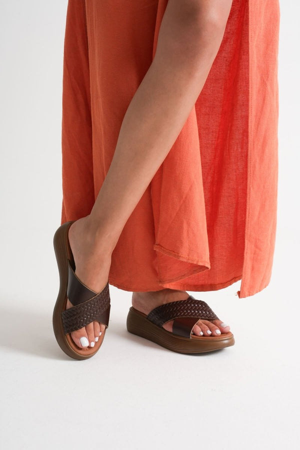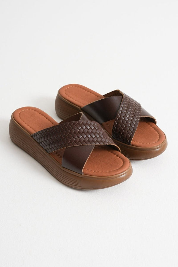 Scarpax Fayn Acı Kahve Hakiki Deri Örgü Desenli Terlik - Şıklık ve Konfor Bir Arada