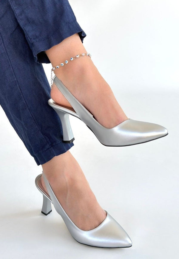 Scarpax 9 cm Topuklu Gümüş Cilt Ayakkabı - Şık ve Rahat Tasarım