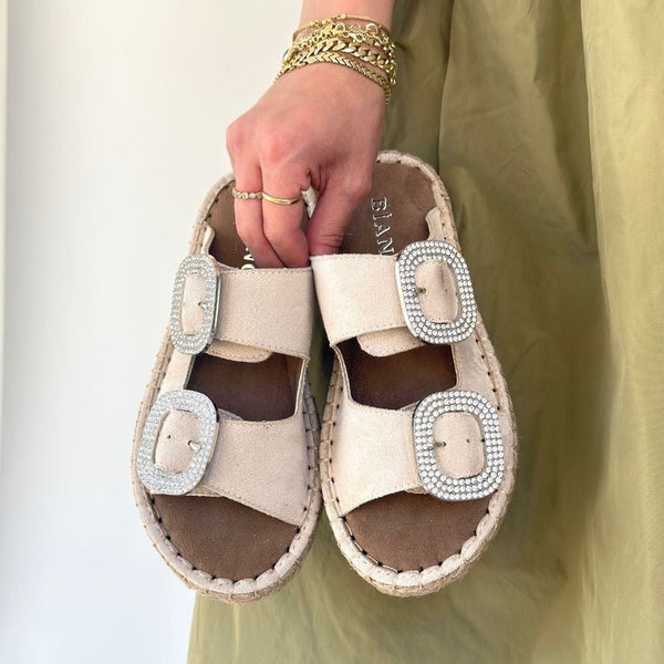 Scarpax Bej Nubuk Tokalı Terlik - 1 cm Topuk, Eva Taban, Standart Kalıp