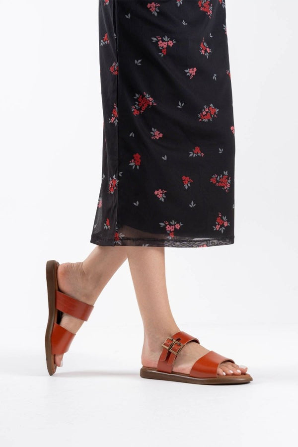 Scarpax Kares Kiremit Hakiki Deri Terlik - Şık ve Rahat Günlük Ayakkabı