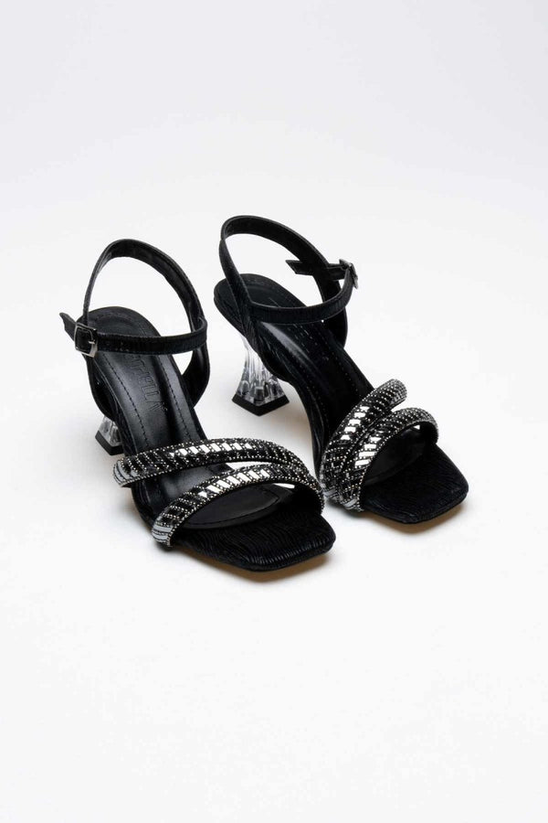 Scarpax Kendy Siyah Kadın Topuklu Sandalet - Taş Detaylı Şıklık