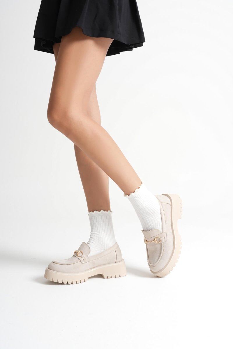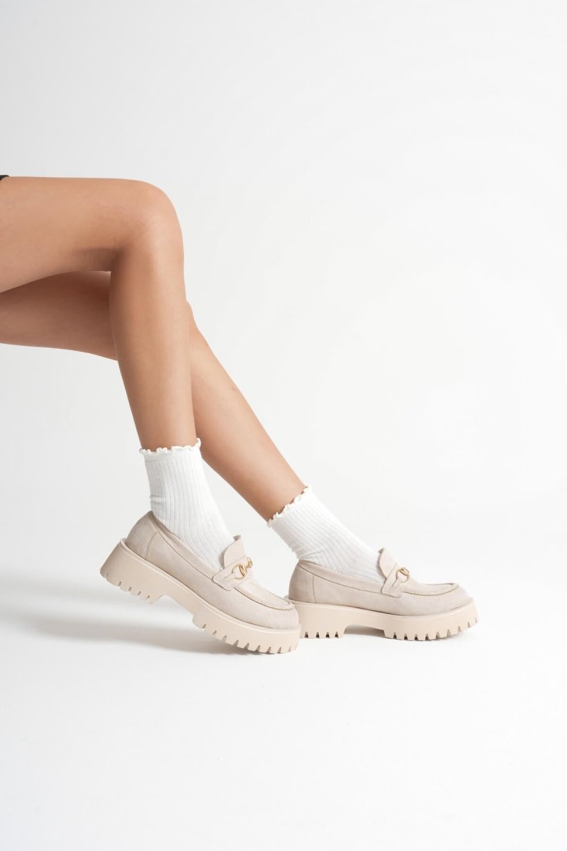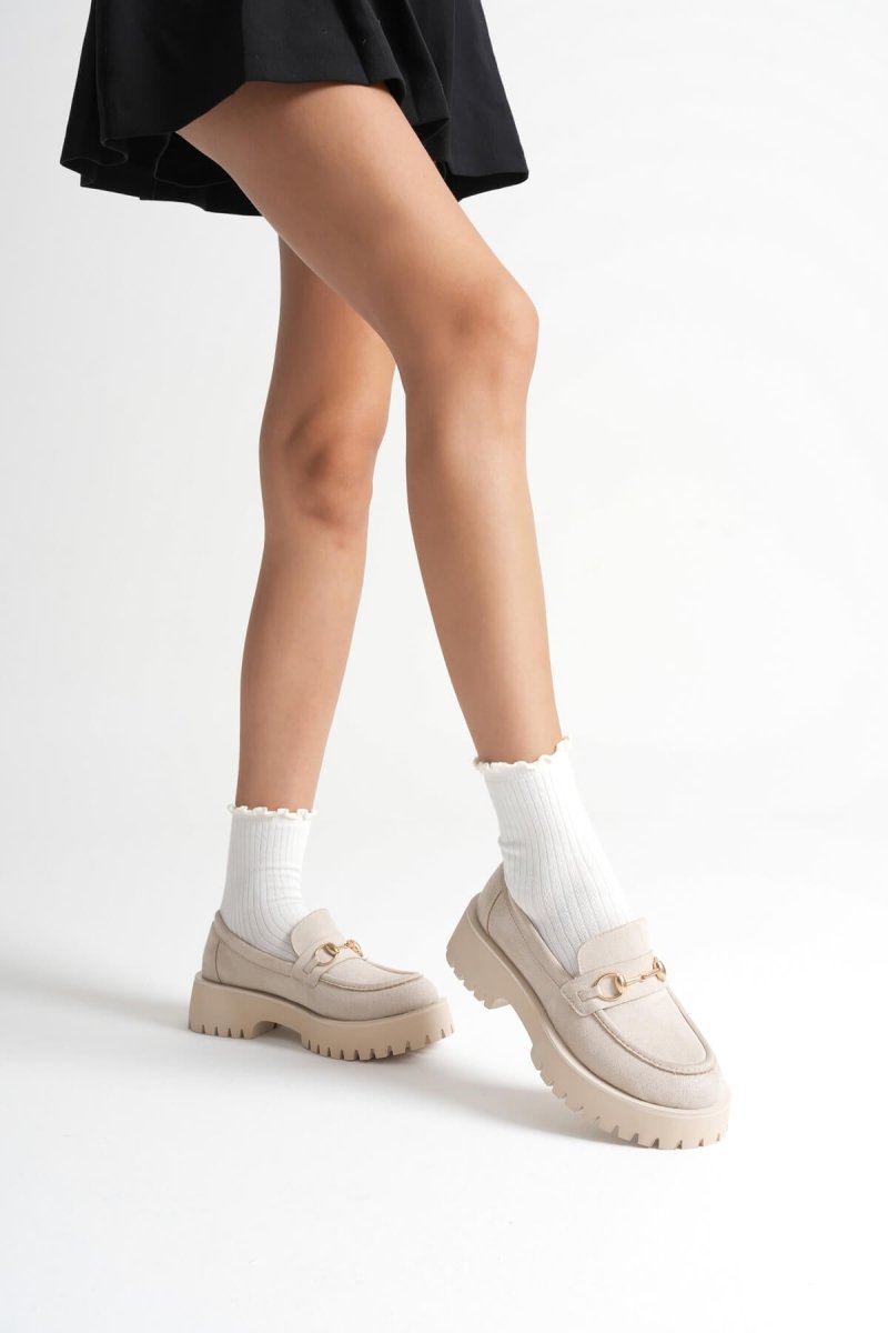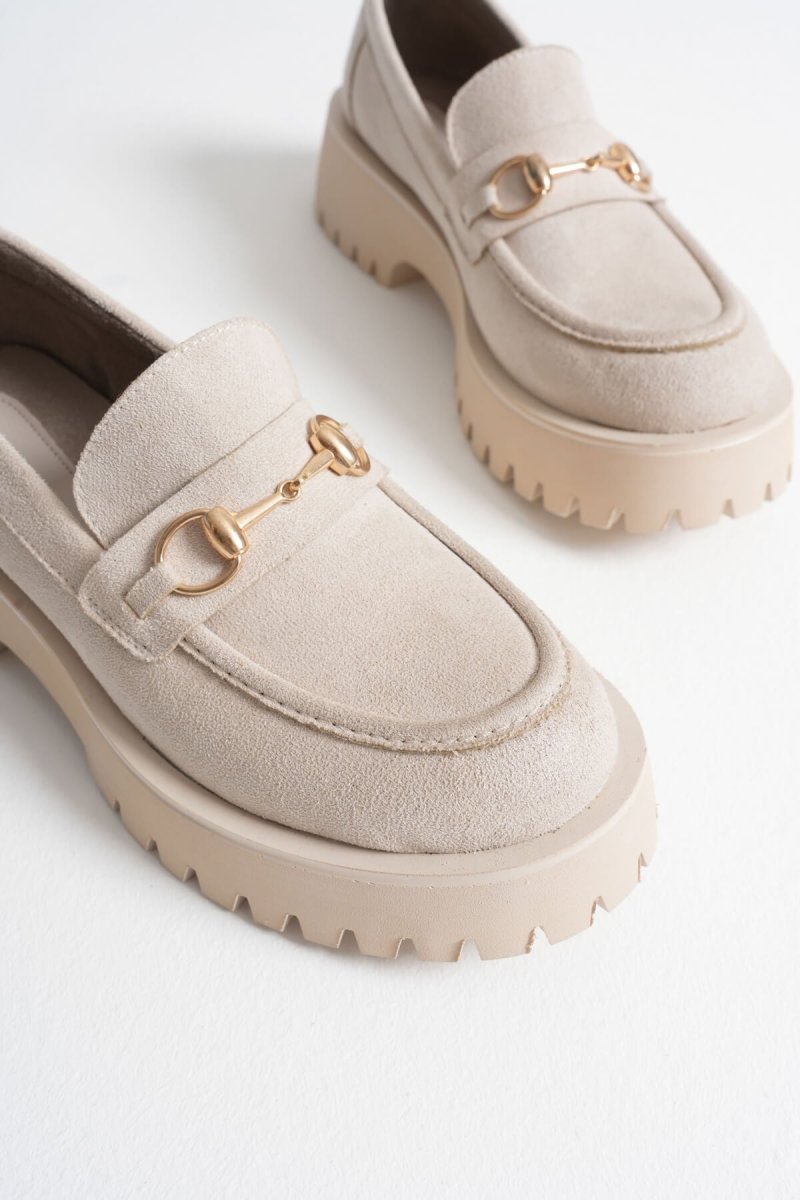 Scarpax Bej Süet Günlük Loafer Ayakkabı - Lara Toka Detaylı, Şık ve Rahat
