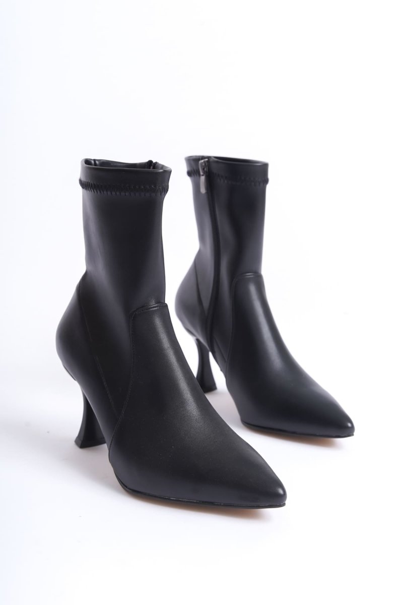 The Scarpax Luna Women's Black Stretch Heeled Boots are elegant and stylish. Taking their place among monthly classics, they offer a wearable option for every season. Ready to complement your outfits for special occasions, business meetings, or everyday wear. Add a modern touch to your style with their high-quality construction and chic design.