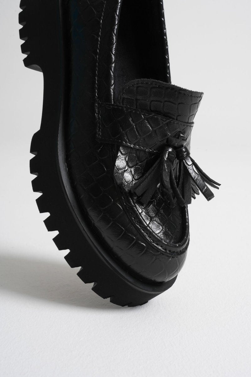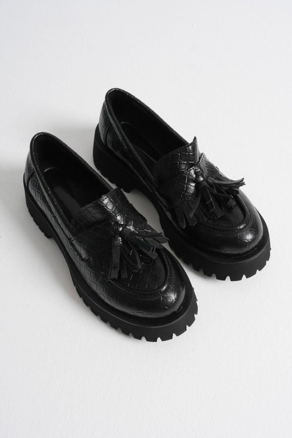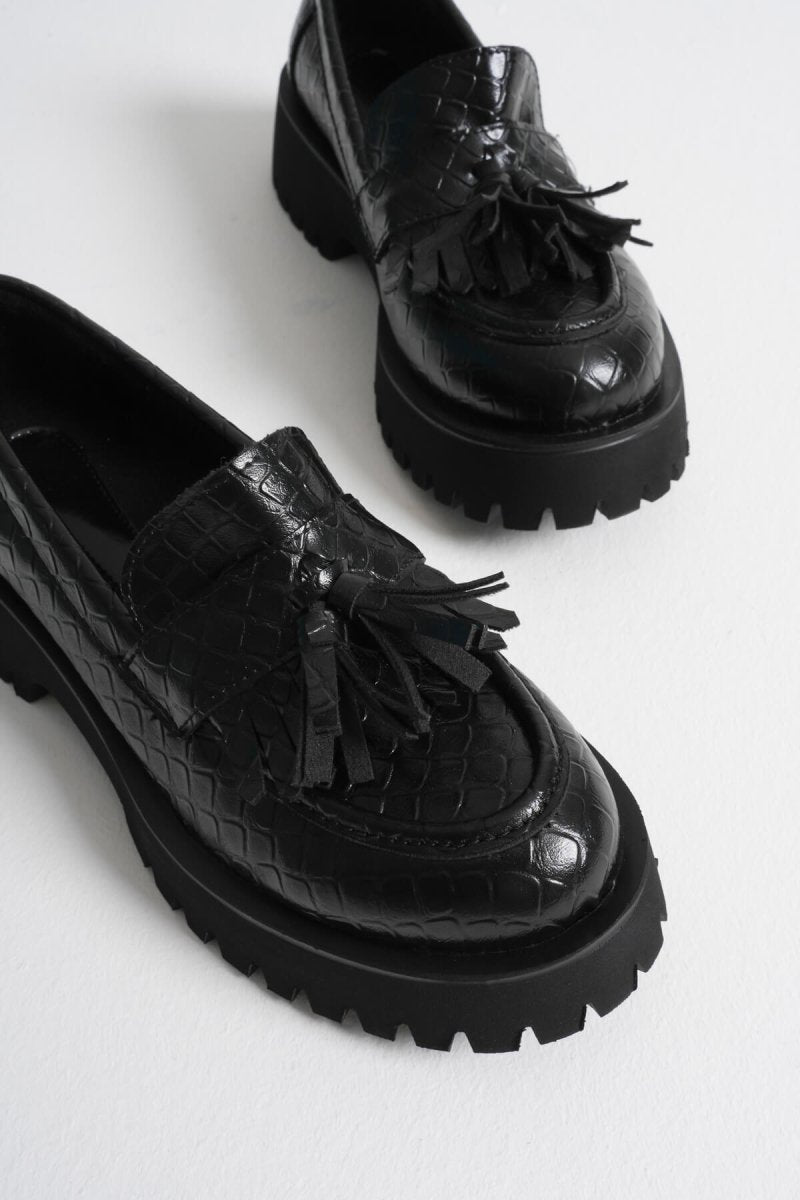 Scarpax Mina Kadın Günlük Siyah Kroko Baskılı Loafer Ayakkabı