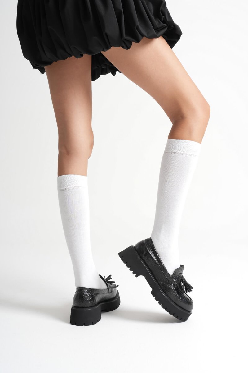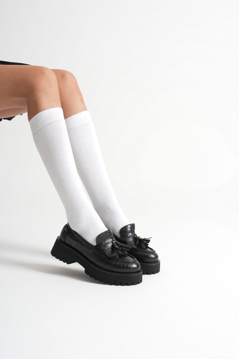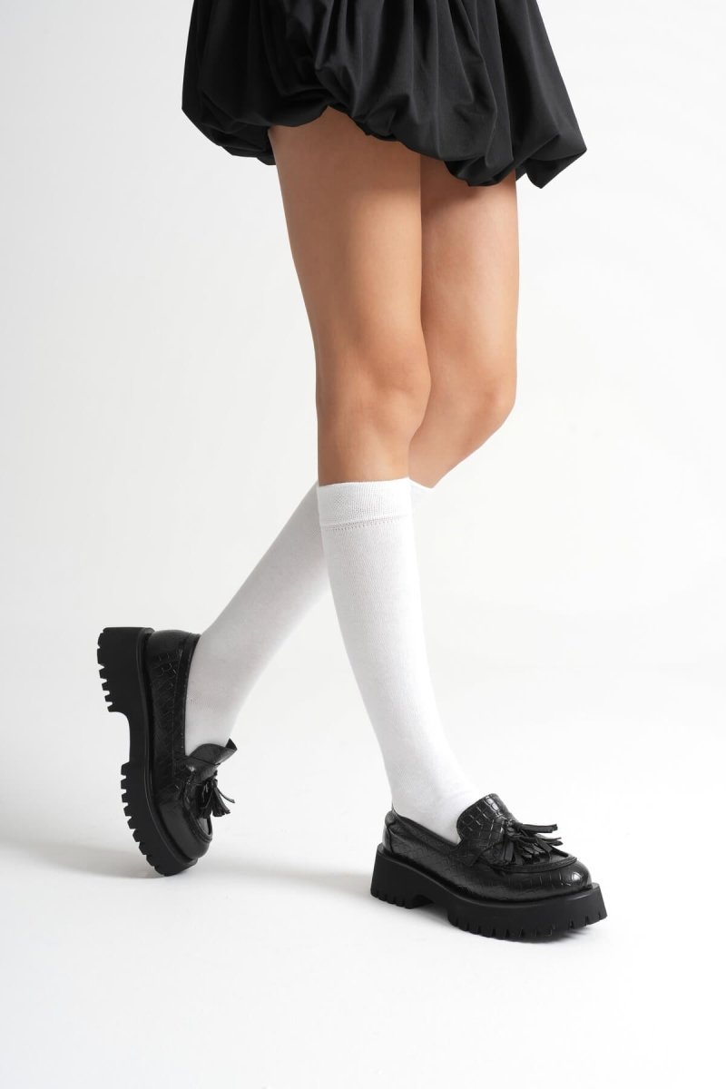 SCARPAX markasının şıklığını ve konforunu bir araya getiren Mina Kadın Günlük Siyah Kroko Baskılı Loafer Ayakkabı, günlük stilinize zarafet katmak için ideal bir tercihtir. Kroko baskısıyla dikkat çeken bu loafer ayakkabı, hem şık hem de son derece rahattır.