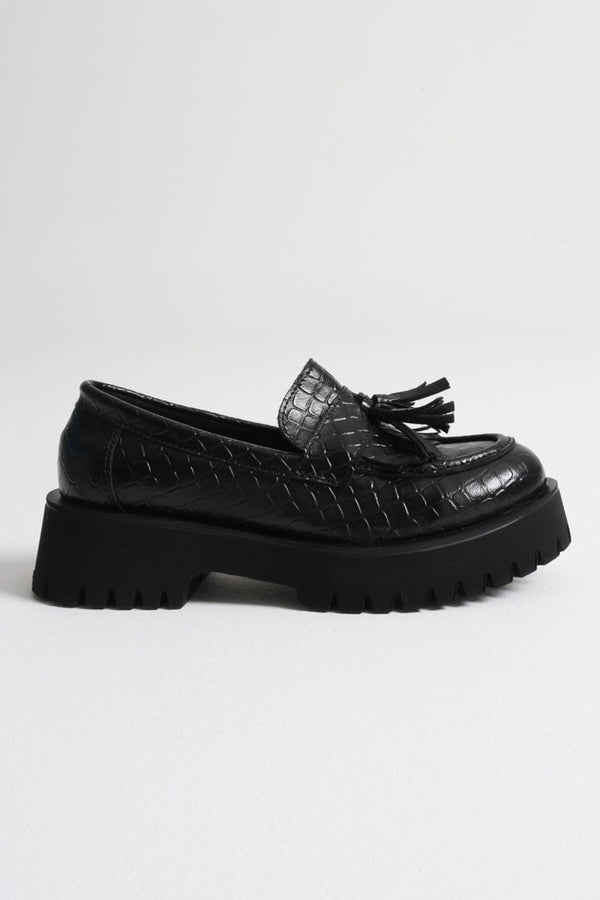 Bu kadın loafer ayakkabı, her türlü kıyafetle kombinleyebileceğiniz çok yönlü bir parçadır. Eşofmanla rahat bir görünüm, elbiselerle ise şık bir hava yaratmak için ideal bir seçenek sunar. Mina Kadın Günlük Siyah Kroko Baskılı Loafer Ayakkabı ile her daim stil sahibi olacaksınız.