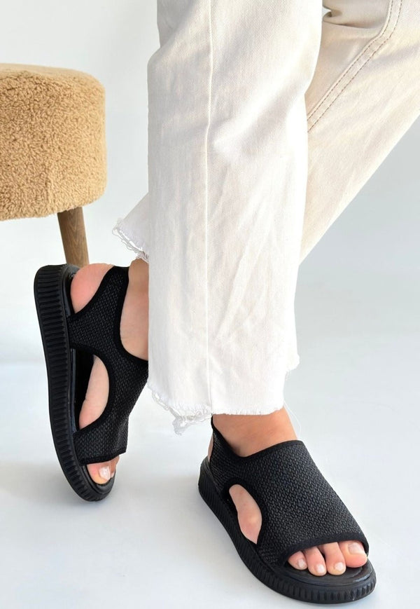 Scarpax Wayi Siyah Hasır Cilt Sandalet
