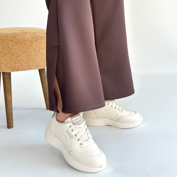 Scarpax Yejja Bej Cilt Bağcıklı Spor Ayakkabı