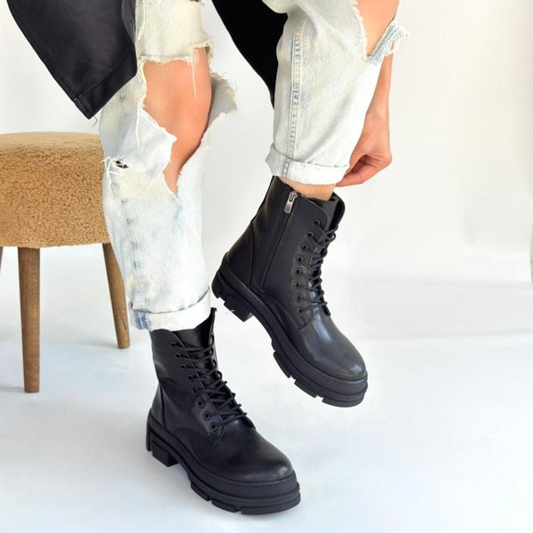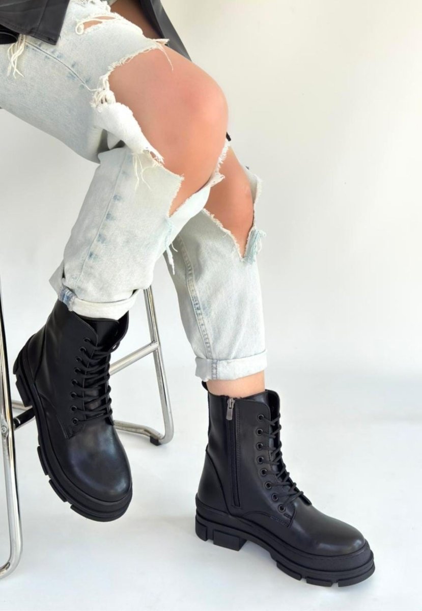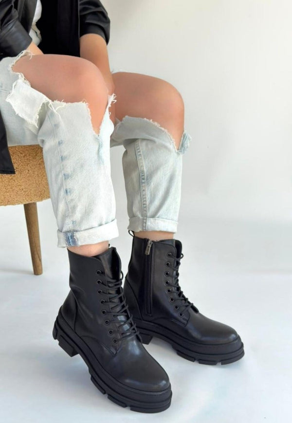 SCARPAX Allex Siyah Cilt Bağcıklı Bot, şıklığı ve konforu bir araya getiren mükemmel bir ayakkabı tercihidir. Bu zarif bot, modern tasarımı ile her türlü kombinle uyum sağlar. Siyah rengi, her mevsim tercih edilebilmesi açısından mükemmeldir.