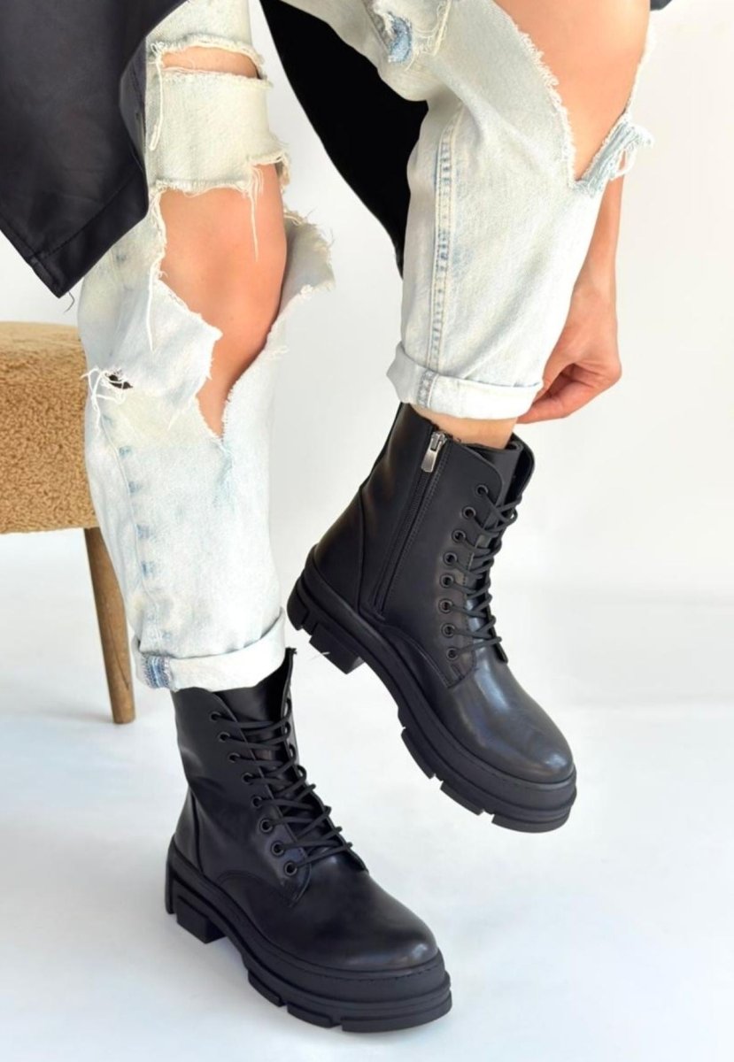 Scarpax Allex Siyah Cilt Bağcıklı Bot
