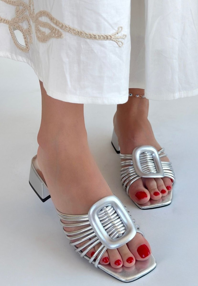 Scarpax Anca Gümüş Rugan Topuklu Terlik - 4 cm Rahat Yürüyüş ve Şıklık İçin
