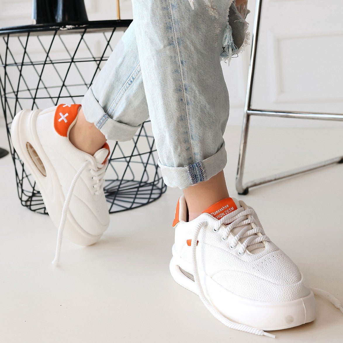 Scarpax Chris Beyaz Spor Ayakkabı - Turuncu Detaylı, Ortapedik Topuk Dikenine Karşı Tasarım