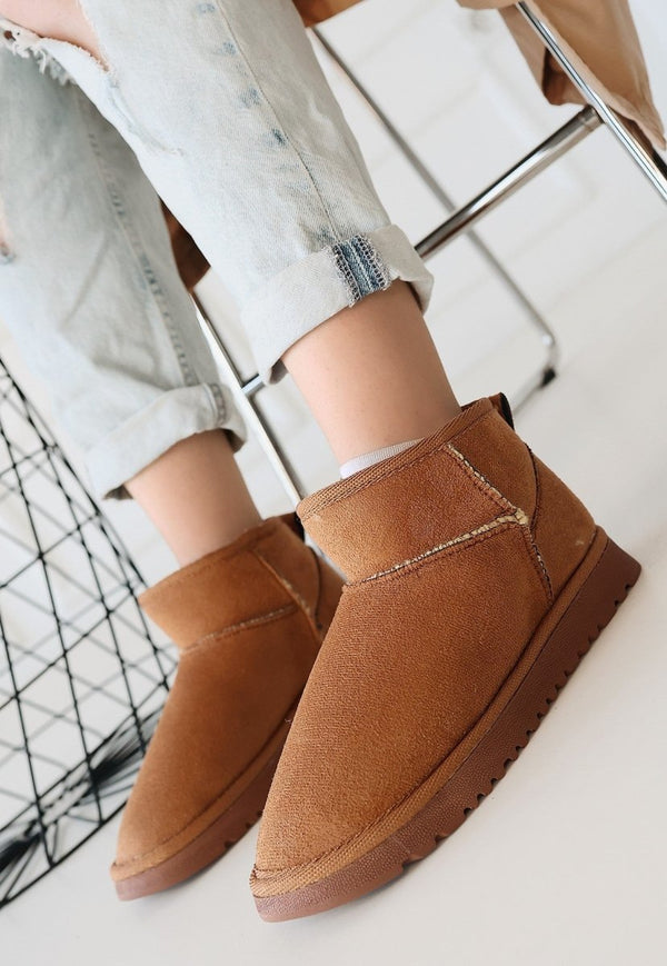 Scarpax Elsa Taba Süet Bot - Kürklü İç Tasarım, 4 cm Topuk, Standart Kalıp