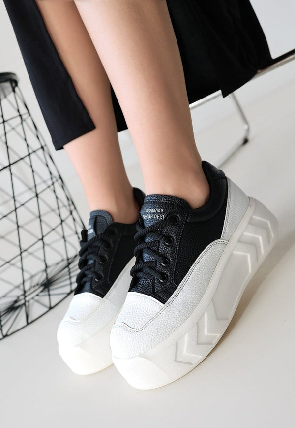 Scarpax Emwa Siyah Cilt Sport Ayakkabı - Özel Ortapedik Topuk Dikenine Karşı Destekli 4 Cm Topuk