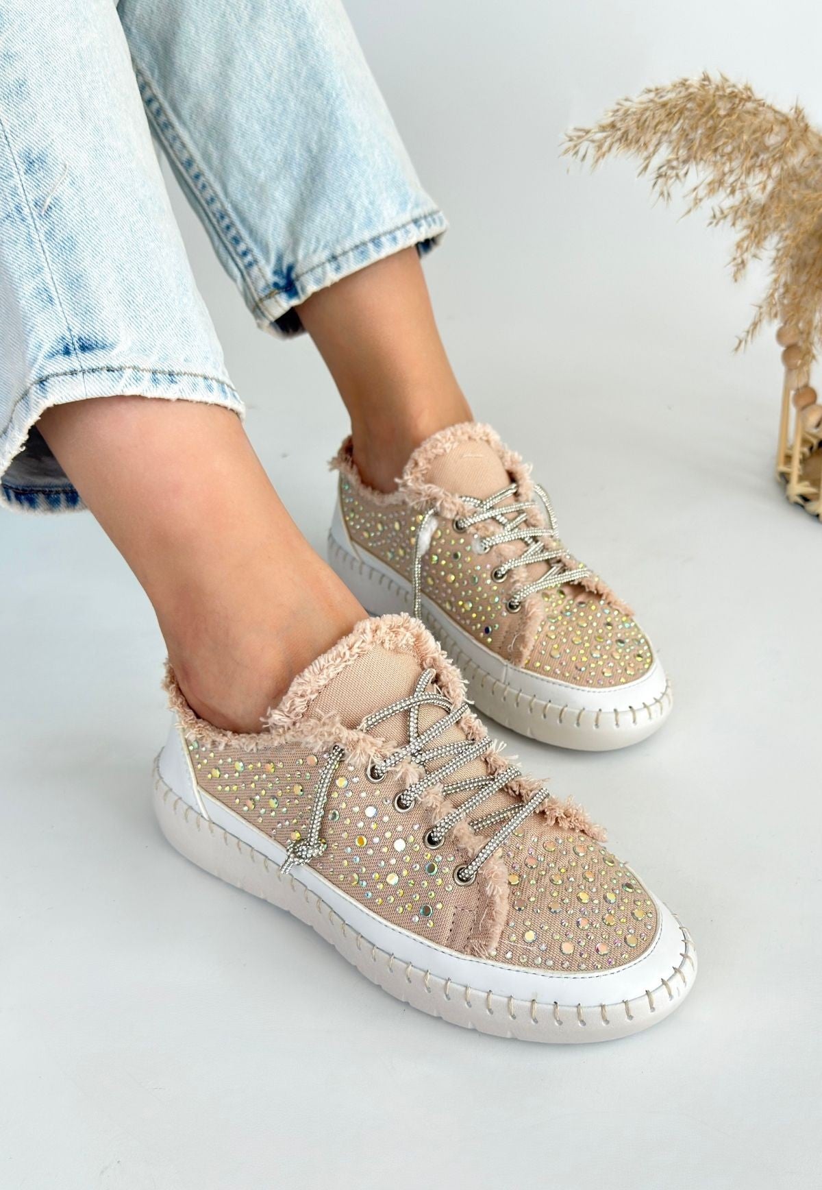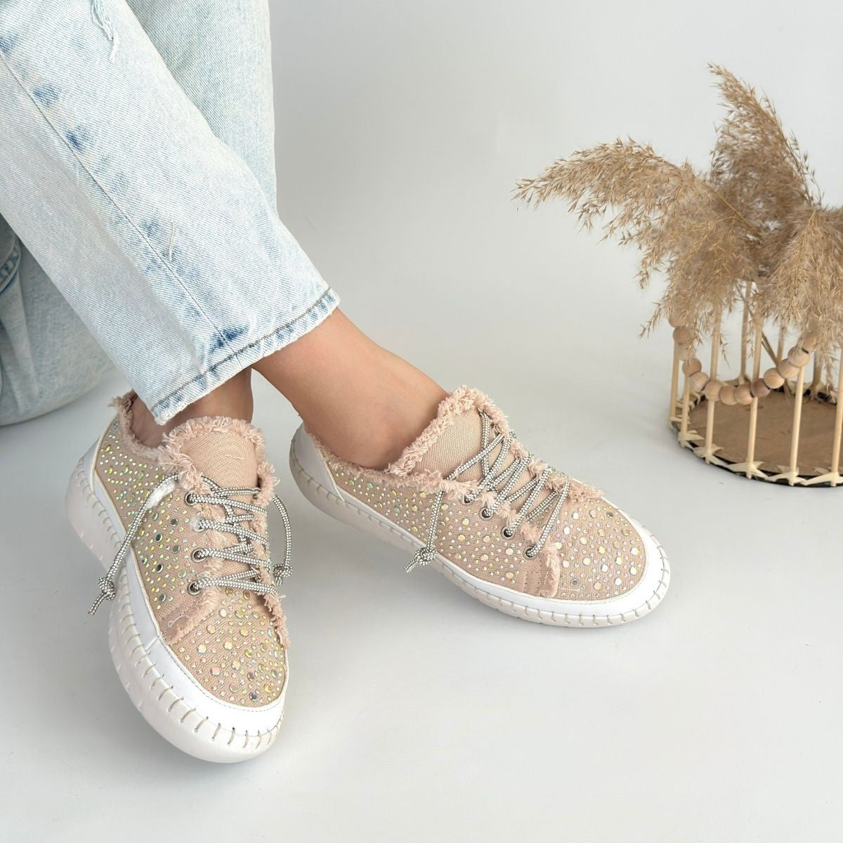 Ayakkabının dış yüzeyi kaliteli keten kullanılarak üretilmiş ve bu sayede hafif bir yapıya sahiptir. Bej rengi, her türlü kıyafetle kolayca kombinlenebilir ve şıklığınızı tamamlar.