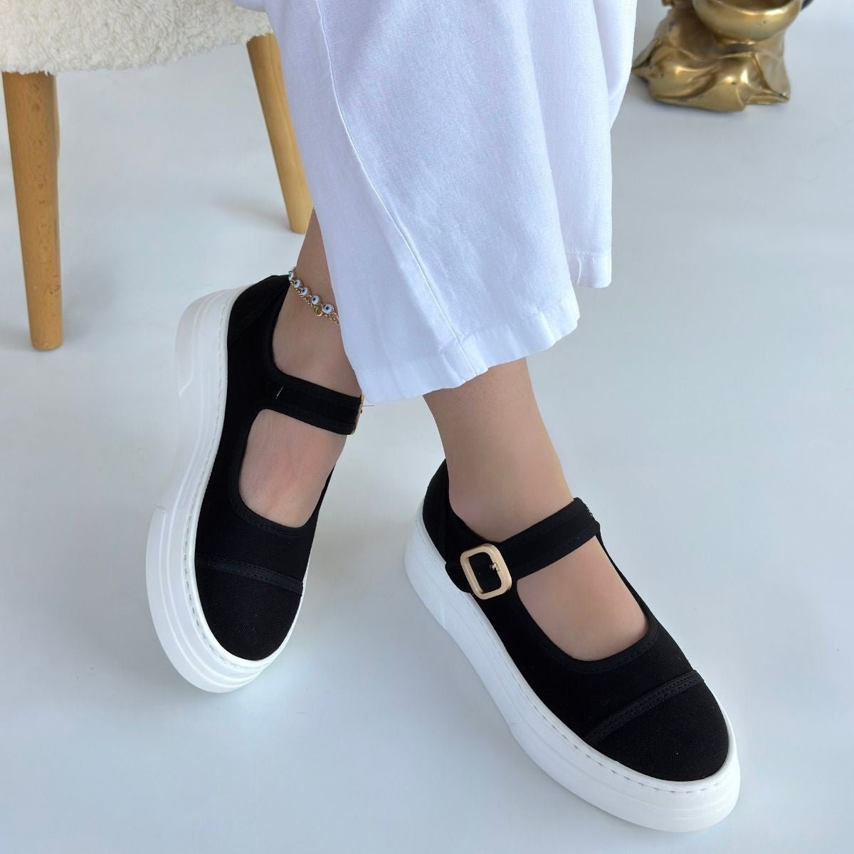 Scarpax Lunni Siyah Keten Spor Ayakkabı - 4 Cm Ortapedik Topuk, Özel İç Taban
