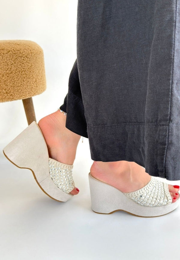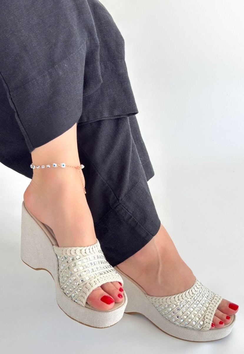 - Şık dolgu topuk tasarımı, zarif bir görünüm sunar.