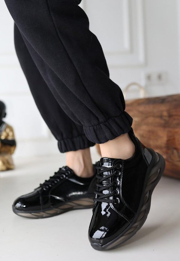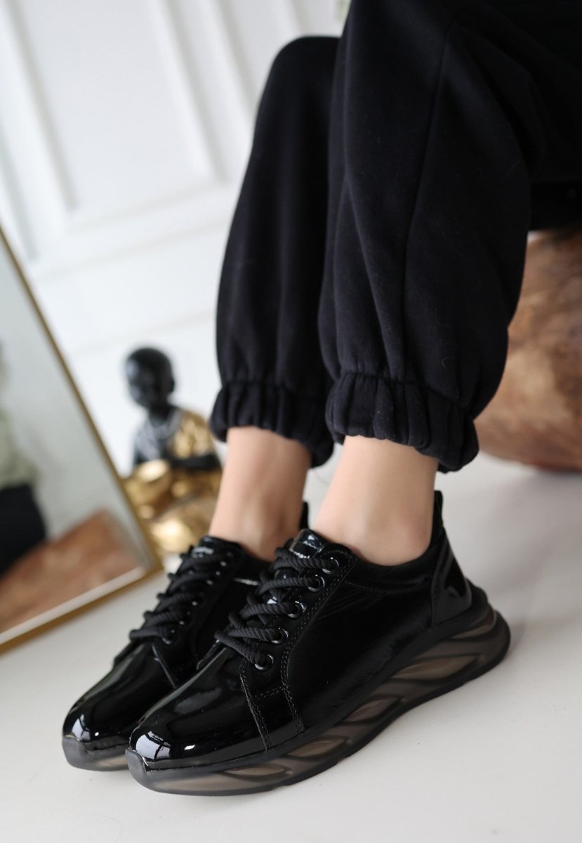 Scarpax Piona Siyah Rugan Gri Tabanlı Spor Ayakkabı