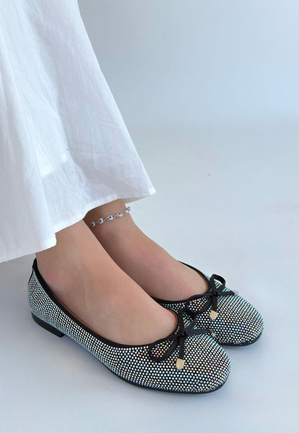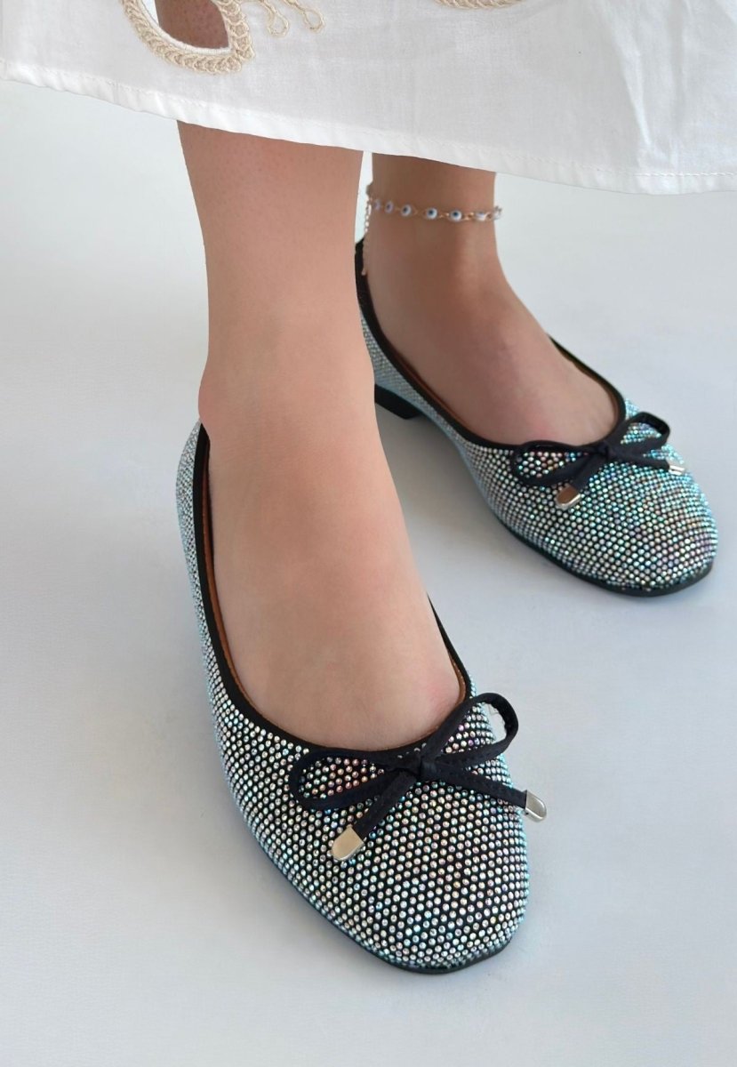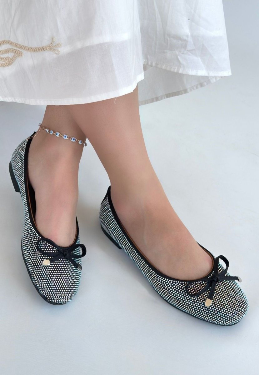 Scarpax Potte Siyah Saten Babet Ayakkabı