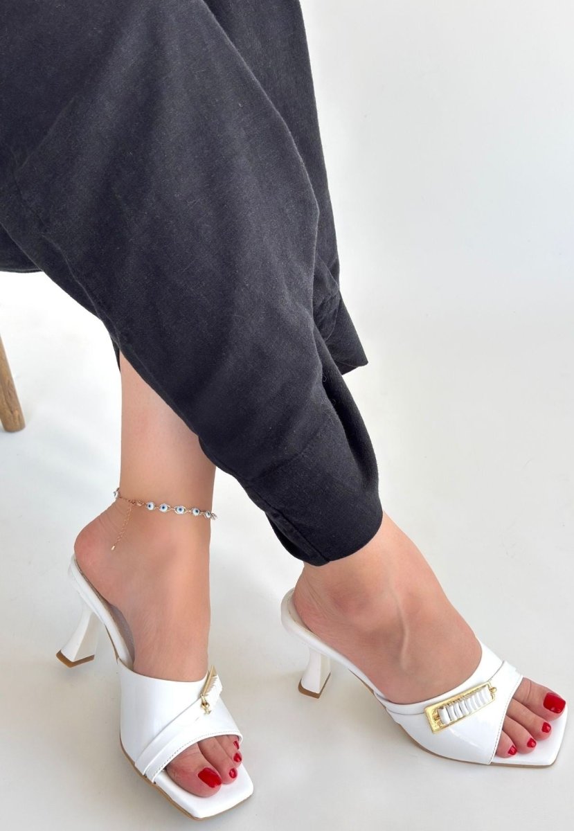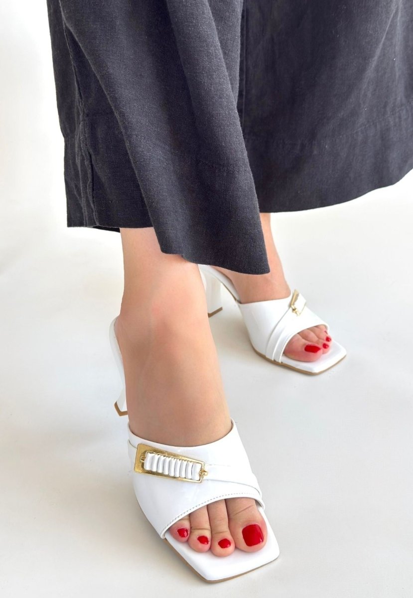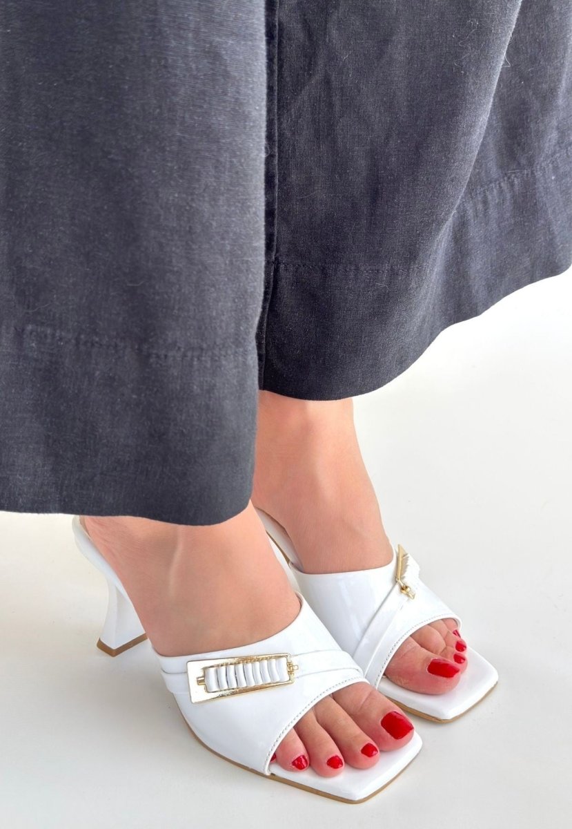 Scarpax Sief Beyaz Rugan Topuklu Terlik