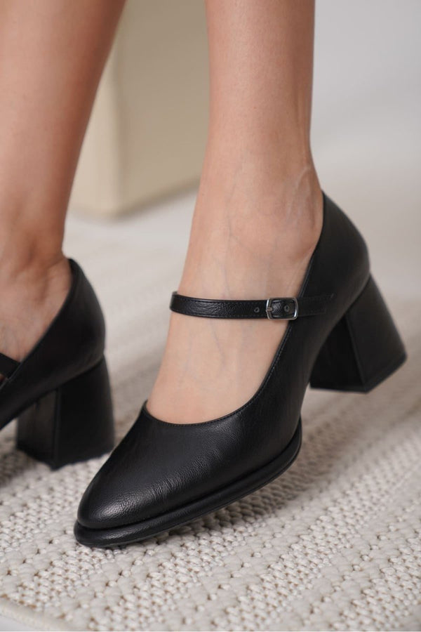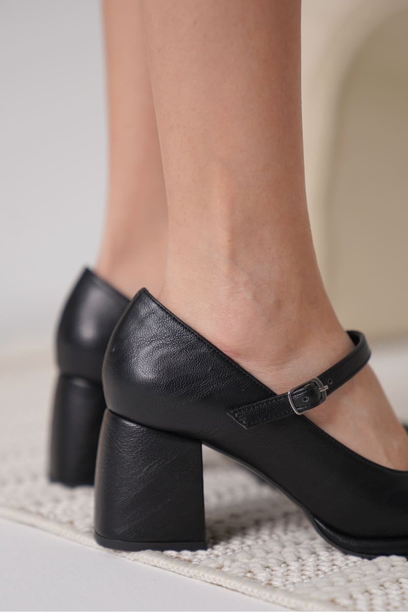 Scarpax Slay Siyah Cilt Kadın Topuklu Ayakkabı