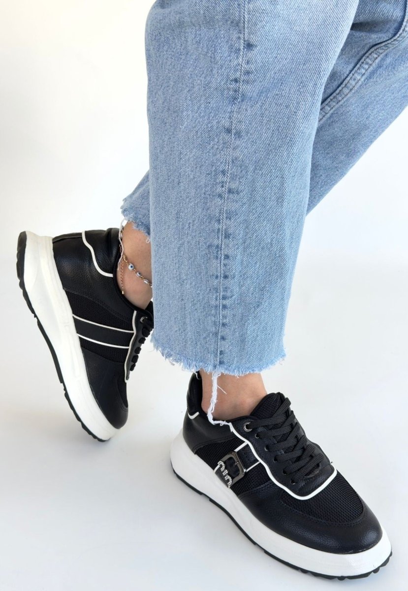 Siyah renk seçeneği, her türlü kıyafetle uyum sağlar. Şık ve pratik spor ayakkabı ile hem sportif bir görünüm elde edin hem de konforu hissedin. Her adımınızda güvende ve rahat hissetmeniz için tasarlandı.