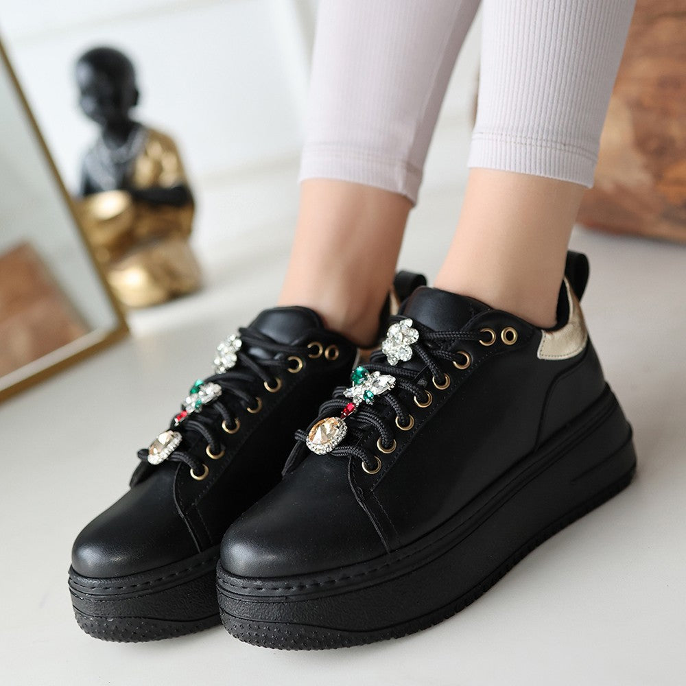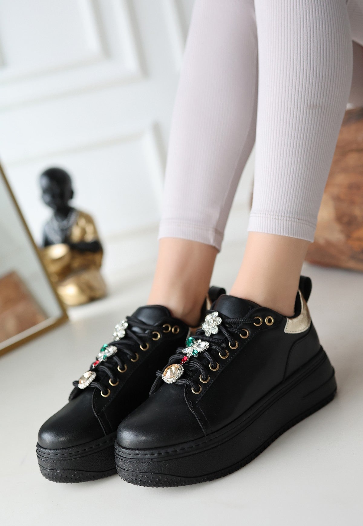 Scarpax Tenya siyah cilt taşlı bağcıklı spor ayakkabı ile stilinizi yansıtın ve konforlu adımlarla onu keyifli hale getirin. Hem şıklığı hem de rahatlaması bir arada sunan bu spor ayakkabı, modayı takip edenlerin favorisi olacak.