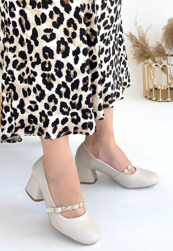 Scarpax Tino Bej Cilt Topuklu Ayakkabı