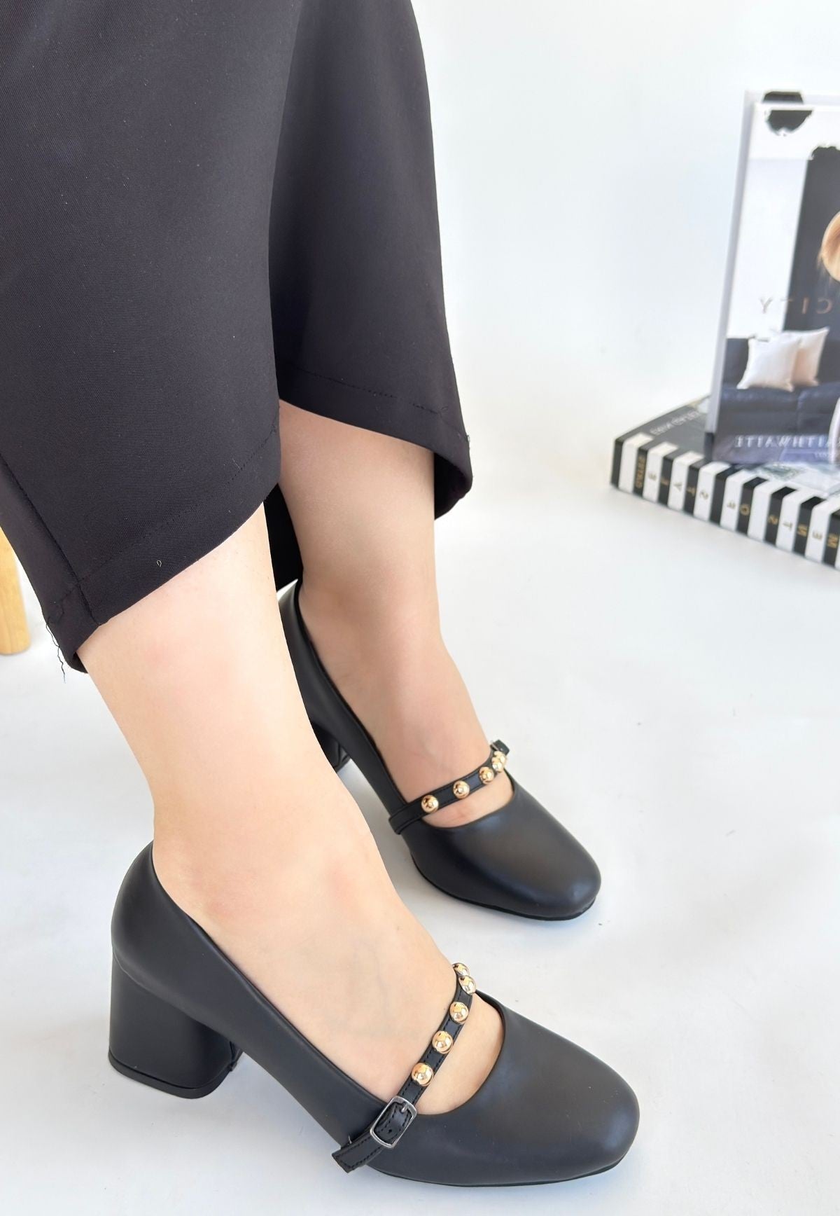 Scarpax Tino Siyah Cilt Topuklu Ayakkabı