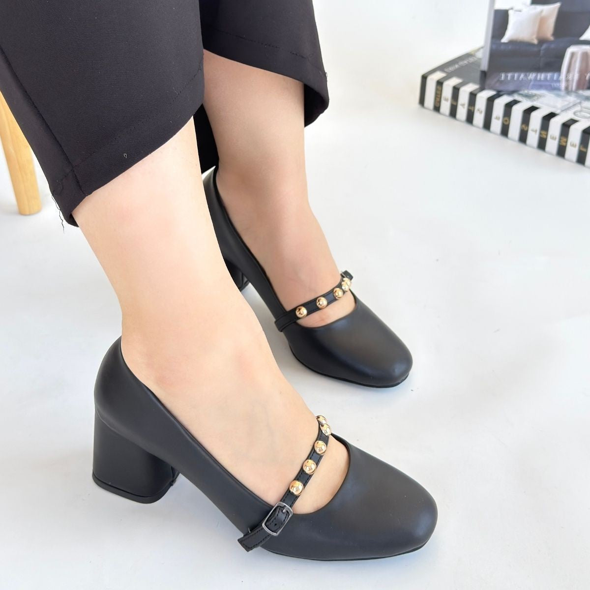 Scarpax Tino Siyah Cilt Topuklu Ayakkabı, şıklığı ve rahatlığı bir arada sunan özel bir tasarımdır. Zengin siyah rengi sayesinde her türlü kıyafetle mükemmel uyum sağlar. Büyüleyici görünümünüzü tamamlamak için ideal bir seçimdir.