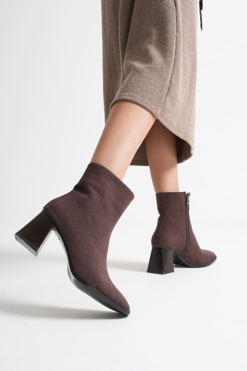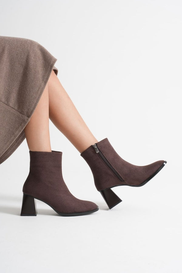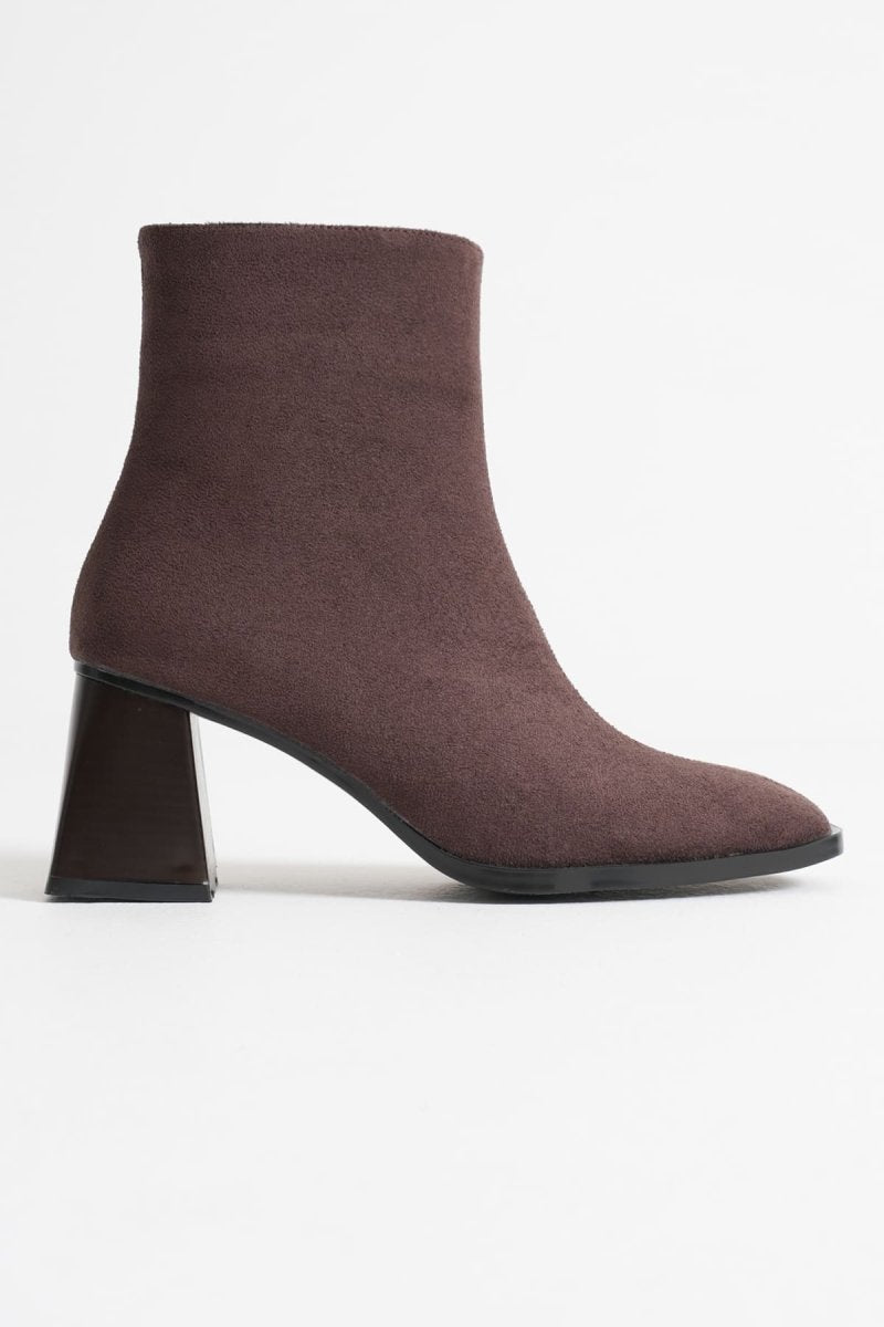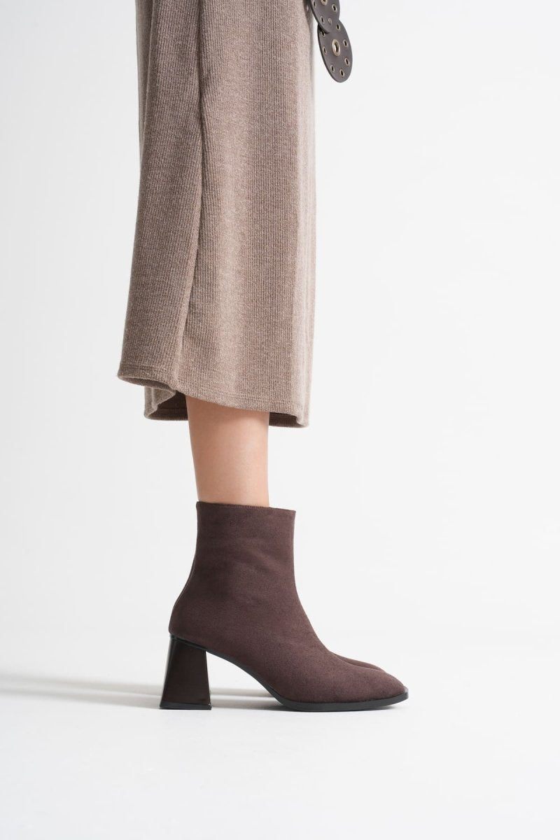 Bu zarif bot, sofistike süet malzemesi ile dikkat çekerken, acı kahve rengiyle de her türlü kıyafetle mükemmel uyum sağlar. Hem gündüz hem de gece kullanıma uygun olan bu bot, şıklığınızı tamamlamak için tasarlanmıştır.