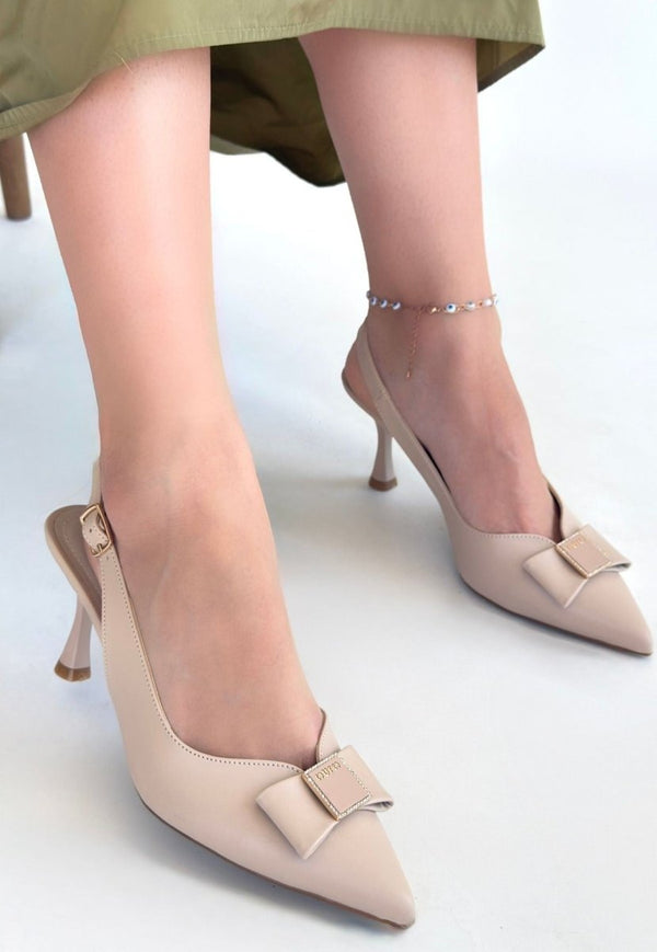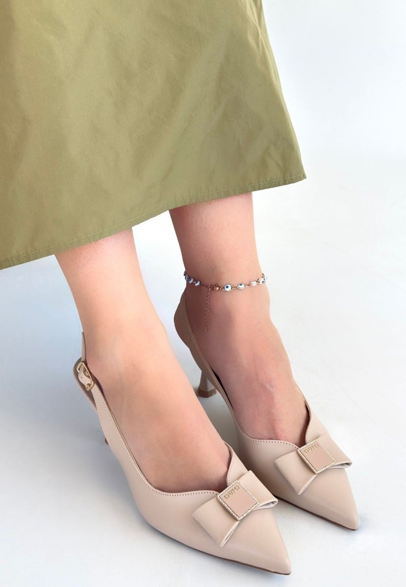 • Zarif Tasarım: Bej rengi ve modern çizgileri sayesinde, bu topuklu ayakkabı her türlü elbise ve kıyafetle mükemmel bir uyum sağlar.
